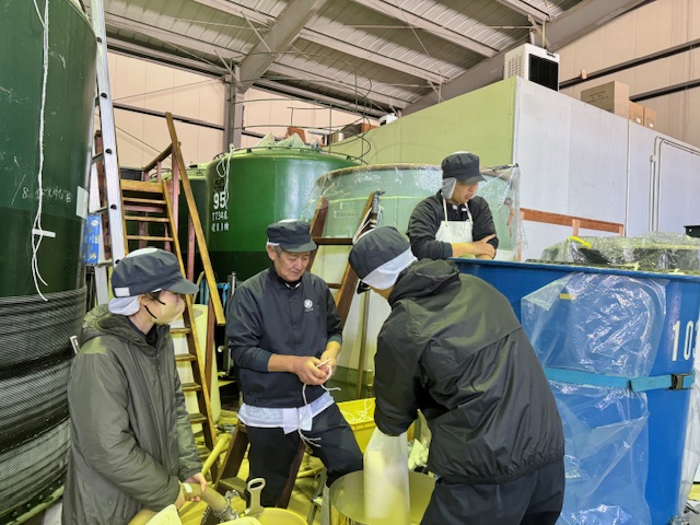 Today, we pressed our seasonal sake made “when the olive flowers bloom on Shodoshima.”
